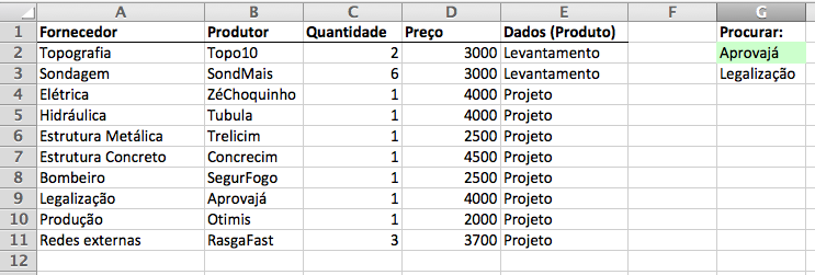 Veja o que obteremos se entrarmos com uma pesquisa de um dos produtores e rodarmos a macro “BuscaFornecedor”: