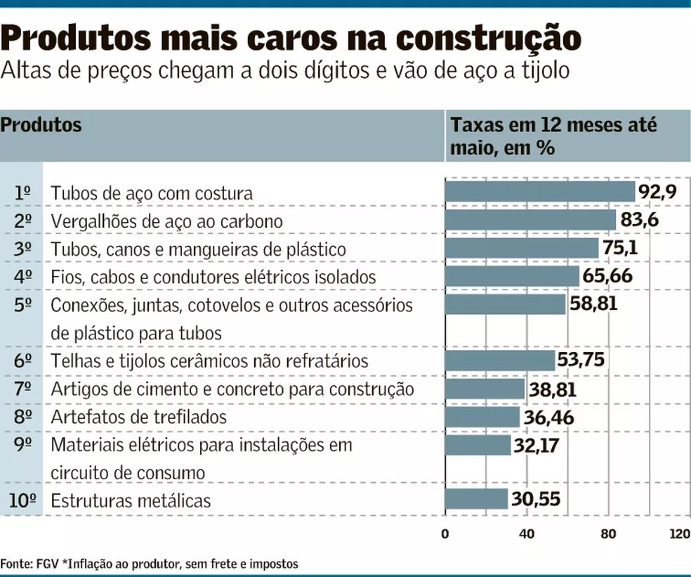Caso você não tenha visto ao vivo o fenômeno, apresento aqui uma outra evidência do mesmo processo: a disparada de preços da construção civil justamente no período de retração econômica decorrente da pandemia da covid-19, conforme divulgado pelo jornal Valor Econômico.