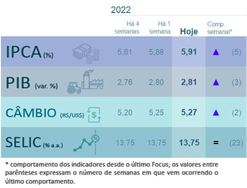 O Relatório Focus do Banco Central do Brasil é o resultado de uma pesquisa feita junto a agentes do mercado, e não necessariamente reflete a percepção ou intenções do governo.